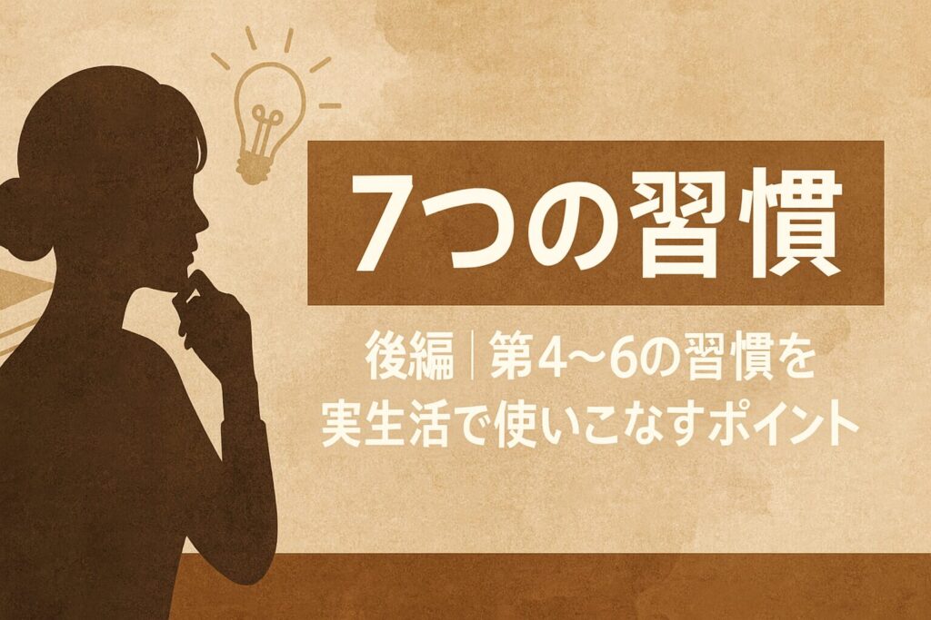 この記事は『7つの習慣』の後編として、第4〜7の習慣を扱っています。第1〜3の習慣(私的成功)については前編で整理しているので、まだ読んでいない方は先にこちらをご覧ください。 ▶ 【『7つの習慣』前編|第1〜3の習慣を実生活で使いこなすポイント】 ... book-review