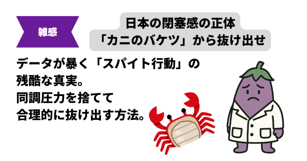 このブログを読むとわかること 現在の日本社会を覆う息苦しさの正体が「スパイト行動(意地悪行動)」であるという事実 SNSで他人の足を引っ張る人間のリアルな属性(データに基づく客観的事実) 同調圧力を無視して自分の目標(資産形成や資格取得など)... 資産形成