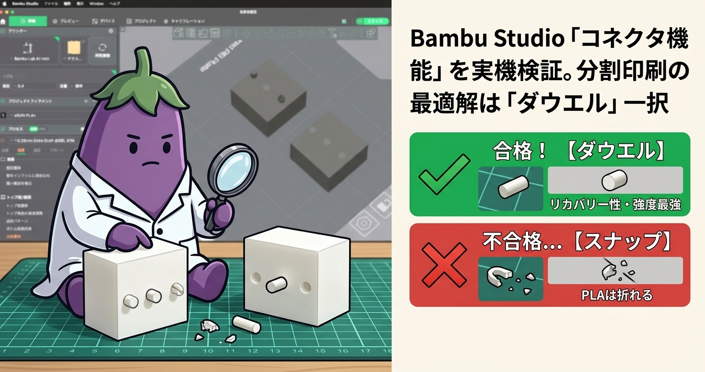 【3Dプリンター】Bambu Studio「コネクタ機能」を実機検証。分割印刷の最適解は「ダウエル」一択な理由