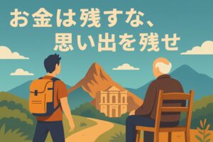 本書の主張は「死ぬときにお金を残す必要はない」というものです。お金は残すためではなく、生きている間に体験や人間関係に投資すべきだという考え方です。これは「貯金不要」という意味ではなく、「必要以上に貯め込むのは機会損失だ」という指摘です。