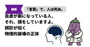医者の誤診という「言葉」一つで人が死んでしまう事実があるのなら、せめて自分自身が毎日発する言葉くらいは、自分を殺す毒(ノセボ)ではなく、生かす薬(プラセボ)として使いたいものです。