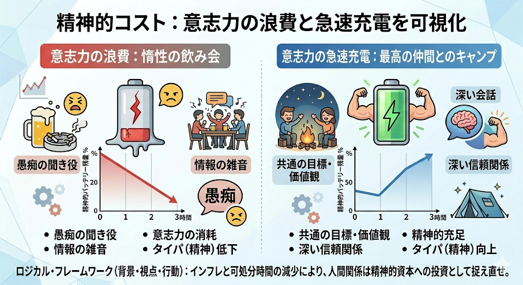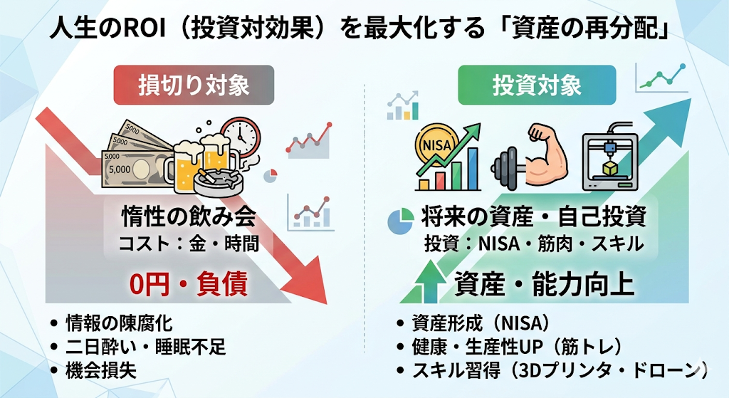 | 惰性の飲み会 | 0円(むしろ負債) | 二日酔い、睡眠不足、情報の陳腐化 |