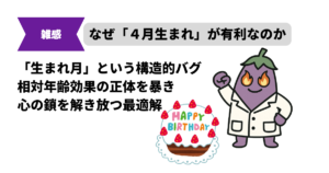 - リスク/落とし穴:誕生日を「運の悪さ」の象徴として語りすぎる → 回避策:年齢相対効果を「環境要因の一つ」として冷静に捉え、「だからこそどう補うか」という視点に意識を向ける。