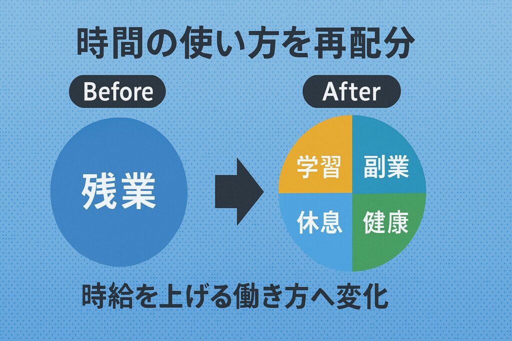 理由:増えた時間を自己投資や副業に回すことで「時給そのもの」が上がり、収入の伸び代が大きくなります。