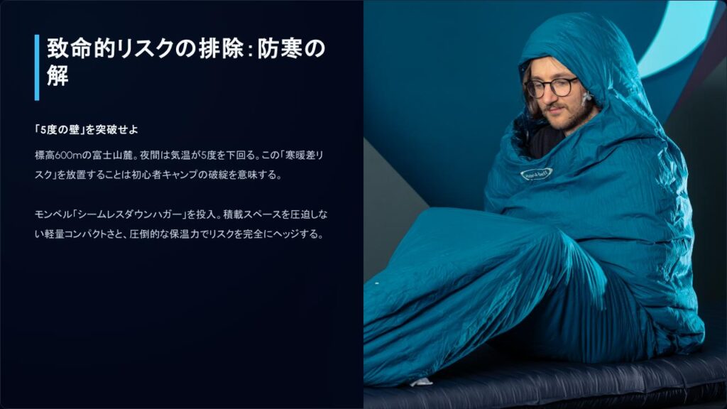 - 今月中に:コンパクトカーの「厳しい積載制限」と標高600mの「寒暖差(夜間5度)」という制約を突破するための、論理的なキャンプギア(シュラフ等)の選定とパッキング戦略を完了させる。