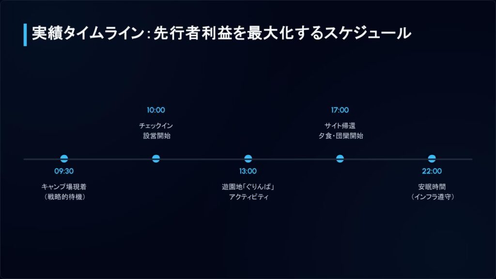 最後にもう一度整理します:キャンプの成功は、事前の「リソース配分(予算・積載)」と当日の「時間管理(先行者利益)」で9割決まる。